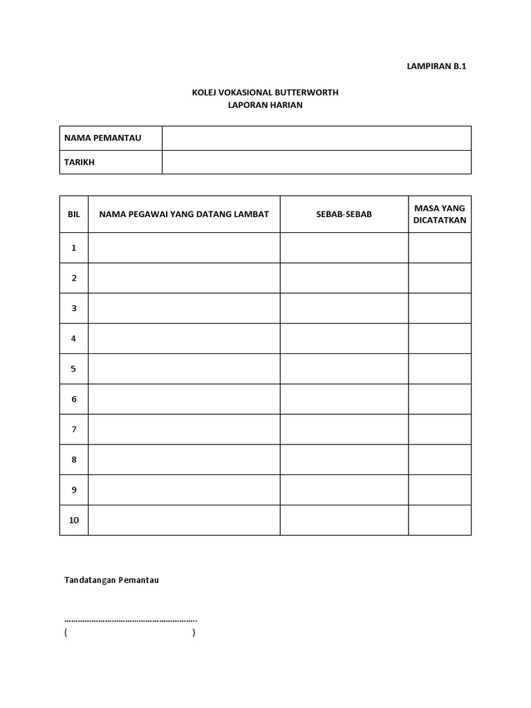 11 Sistem Kad Perakam Waktu KPW ini digunakan bagi menggantikan sistem mendaftar kedatangan dan kepulangan pegawai-pegawai dan kakitangan pejabat melalui. Up to 3 cash back LAMPIRAN B3 LAPORAN BULANAN KAD PERAKAM WAKTU Nama Pegawai Bertugas Tarikh Bil. Jabatan Unit Wad.